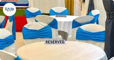 உங்கள் திருமண, சடங்கு அல்லது நிறுவன நிகழ்வுகளை எங்கள் பிரமிக்க வைக்கும் மண்டபத்தில் நடத்துங்கள், விருந்தினர்களின் பயண மற்றும் மன அழுத்தத்தைத் தவிர்க்கும் வகையில், அழகாக வடிவமைக்கப்பட்ட அறைகளை நாங்கள் எமது வளாகத்திலேயே வழங்குகிறோம். ஆரம்பம் முதல் இறுதி வரை தடையற்ற, ஆடம்பரமான அனுபவத்தை அனுபவியுங்கள்.
